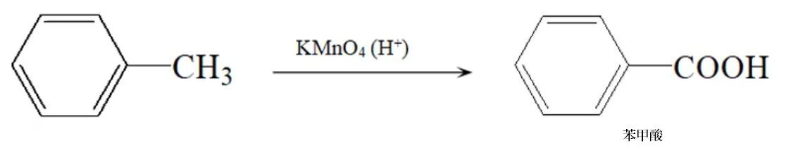 2. 与强氧化剂反应:苯的同系物大多数能被酸性 KMnOA4 溶液氧化为 苯甲酸 而使其褪色